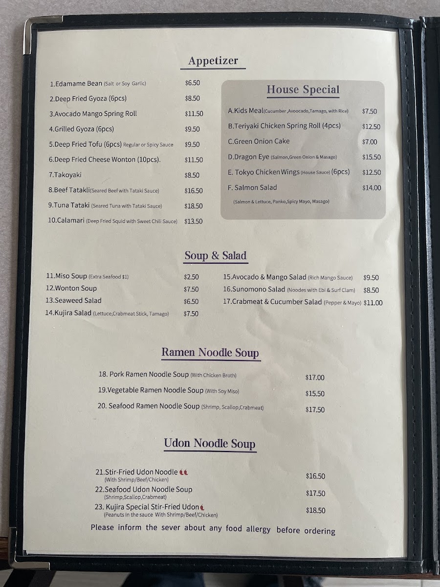Welcome to Kujira, a hidden gem located in Whitecourt, AB, where authentic Japanese flavors meet friendly service. Specializing in diverse menu items, Kujira offers a delightful culinary journey for every palate. Start with the mouthwatering Teriyaki Chicken Spring Rolls and Green Onion Cake, both hailed as must-try appetizers by satisfied patrons. For heartier options, dive into their flavorful Ramen Noodle Soups, available in both pork and seafood variants, ensuring a satisfying experience with every slurp.